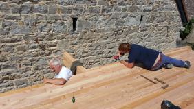 L' ECOBLOC PBM® dall est réalisée avec des madrier séchés à 18% profilés et industrialisés formant un plancher massif (surface obtenue par vissage des éléments sur place).