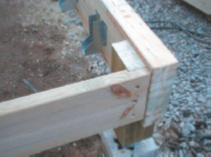 Les longrines en bois sont généralement utilisées jusqu’à 5 m de portée au-delà on utilisera du lamellé collé jusque 8 m . La jonction se fait par l’intermédiaire d’une ferrure métallique chevillée au plot. L’extrémité du plot est inclinée et le dessus de la poutre est protégé par une couver tine (bavette de protection) pour que la poutre ne soit pas en contact avec l’eau.