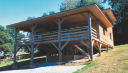 en bois. En outre, les constructions peuvent être légèrement surélevées du sol. Comme les pieux et les pilotis, les plots nécessitent peu de fouilles et ils préservent la topographie naturelle du terrain.
