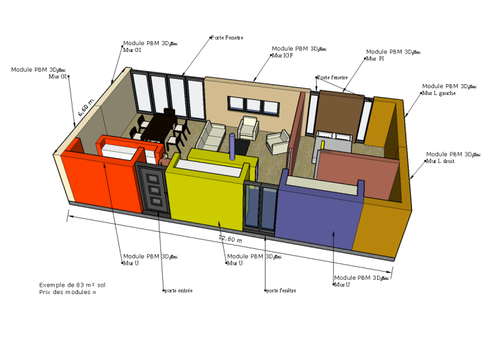 Chaque élément permet aussi d'aménager les murs intérieurs en mono mur.